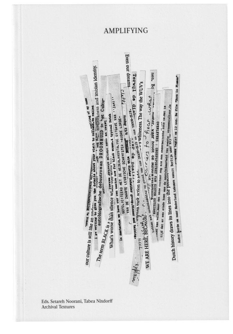 - Boekomslag Amplifying, red. Setareh Noorani, Tabea Nixdorff, gepubliceerd door Archival Textures, 2024.