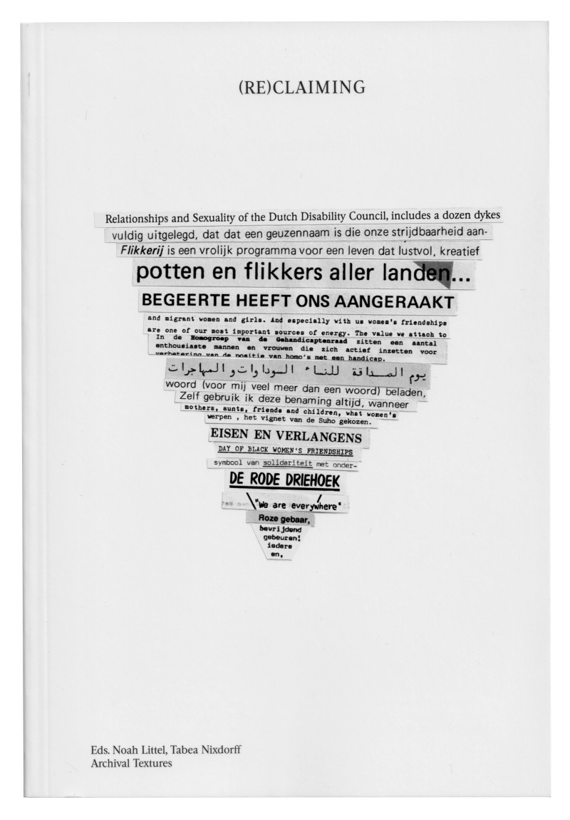 - Book cover (Re)claiming, eds. Noah Littel, Tabea Nixdorff, published by Archival Textures, 2024.
